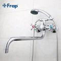Frap Bathroom Faucet Long Water Outlet Tube 90 Degrees Mixer Tap Bathtub faucet Wall Mounted Held Shower Set Hot and Cold Water